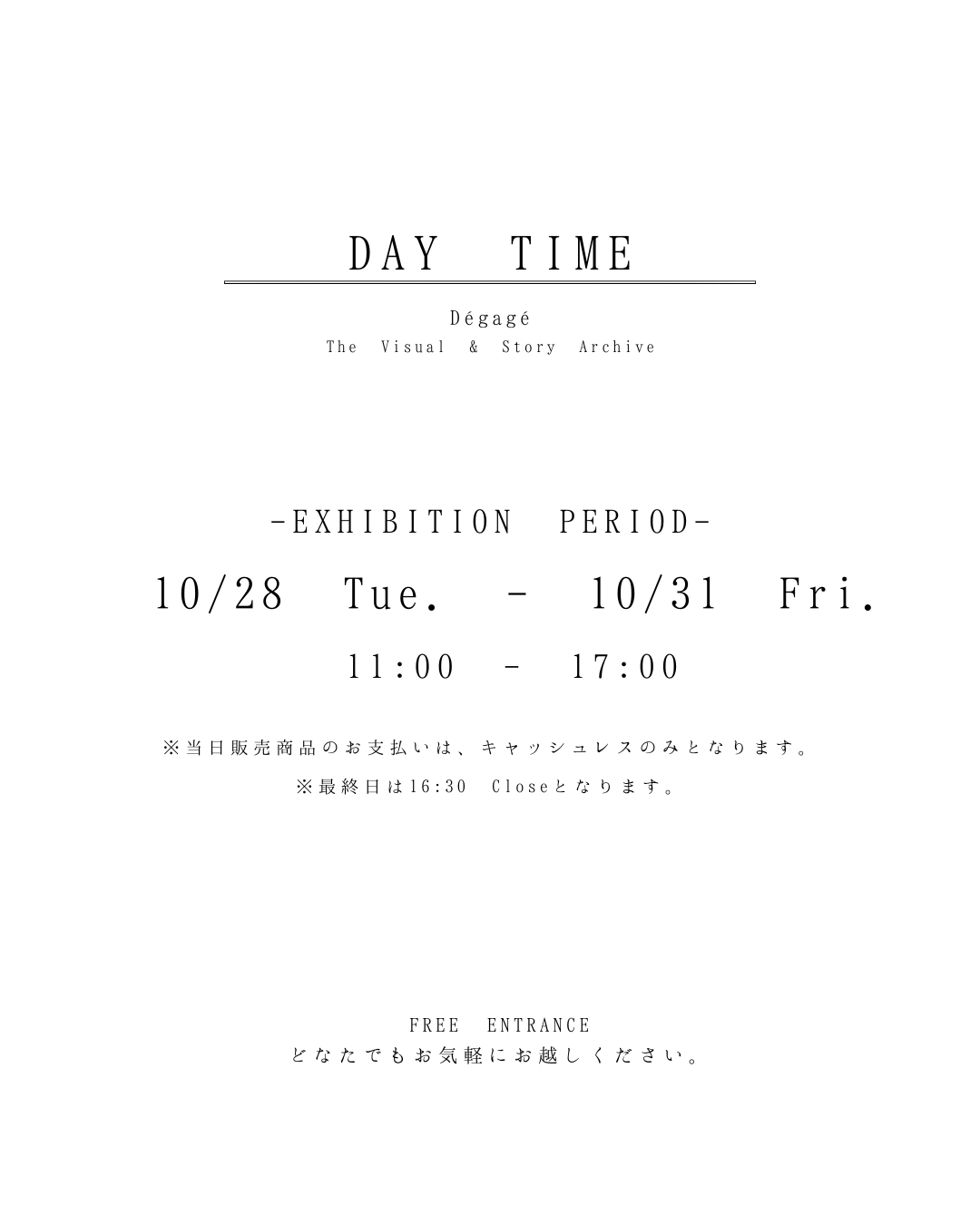 Column 10/28~10/31 イベント開催間近! 更新日: 2025-10-252025-10-25 unoa初のビジュアルアーカイブ展「Dégagé The Visual & Story Archive」を10/28〜10/31に開催いたします。ぜひお誘い合わせの上、遊びにいらしてください。