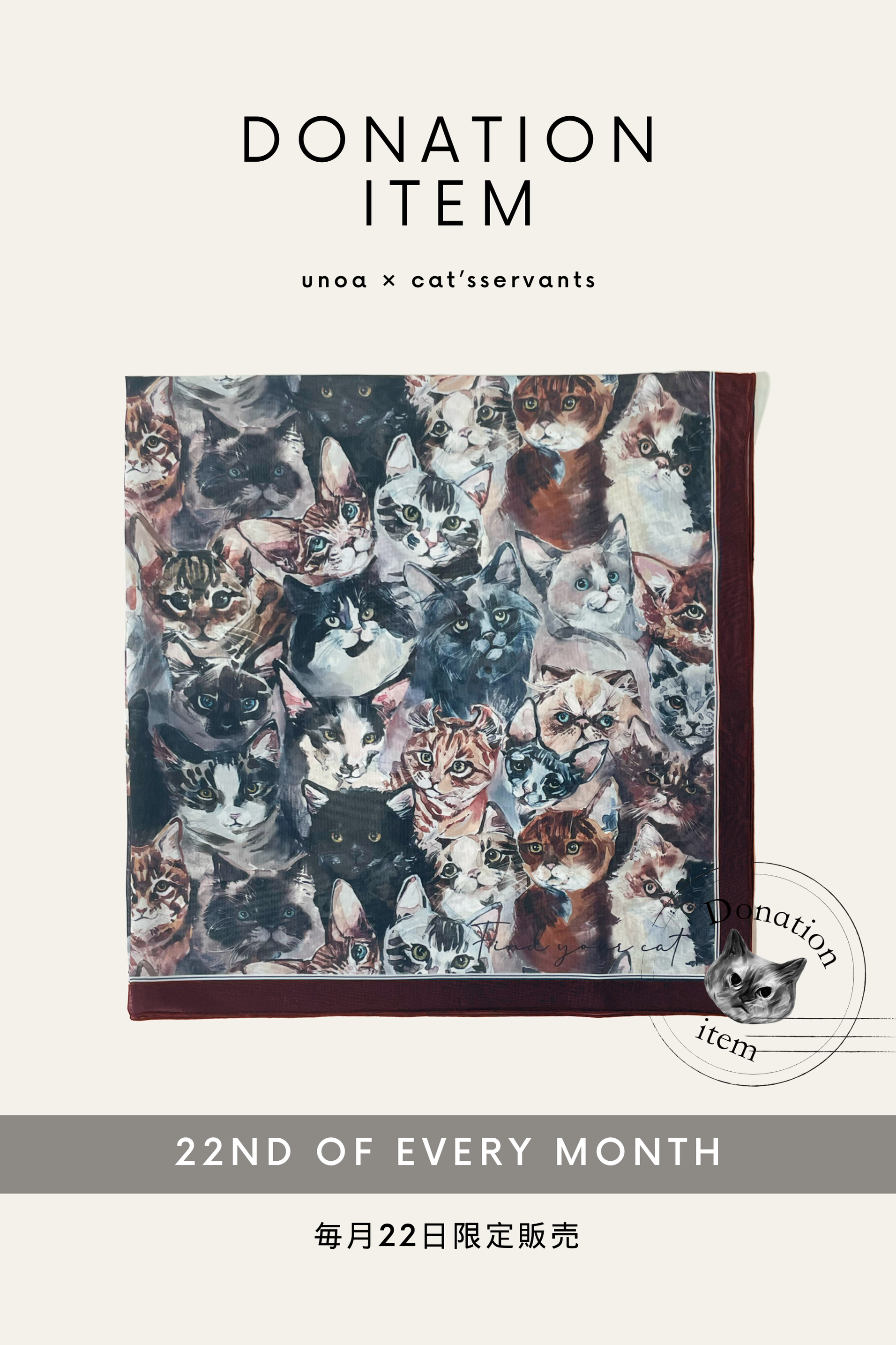 新色 Scarf large Find your Cat! Bordeaux です。